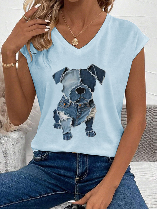 Cão engraçado arte impressão t-shirt Vintage feminino