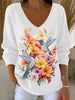 Arte Floral Retro Animal V-Neck Casual Top feminino
