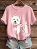 Artístico Animal Print Confortável Malha Top de manga curta feminino