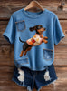 Artístico Animal Print Confortável Malha Top de manga curta feminino