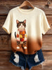 Artístico Animal Print Confortável Malha Top de manga curta feminino