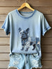 Buldogue francês feminino padrão Patchwork Art t-shirt
