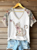 Camiseta Casual do gato das flores silvestres das mulheres