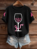 Camiseta de manga curta de vidro de vinho câncer de mama feminino