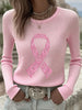 Consciência câncer de mama feminino fita rosa manga longa camisetas