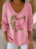 Consciência Feminina Casual Câncer de Mama Imprimir Camiseta Manga Longa