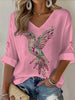 Decote em v manga média câncer colibri feminino impresso t-shirt Casual