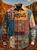 Fé Casual Retro dos homens Cruz arte impressão manga longa camisa