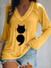 Gato feminino imprime camiseta de manga comprida com decote