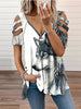 Lobo aborígene feminino imprimir com zíper V-neck T-shirts