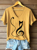 Music Note inspirado T-shirt do gato impressão V-Neck das mulheres