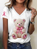 Retro Breast Cancer Awareness Bonito Pérola Urso Imprimir T-shirt De Manga Curta V-Neck