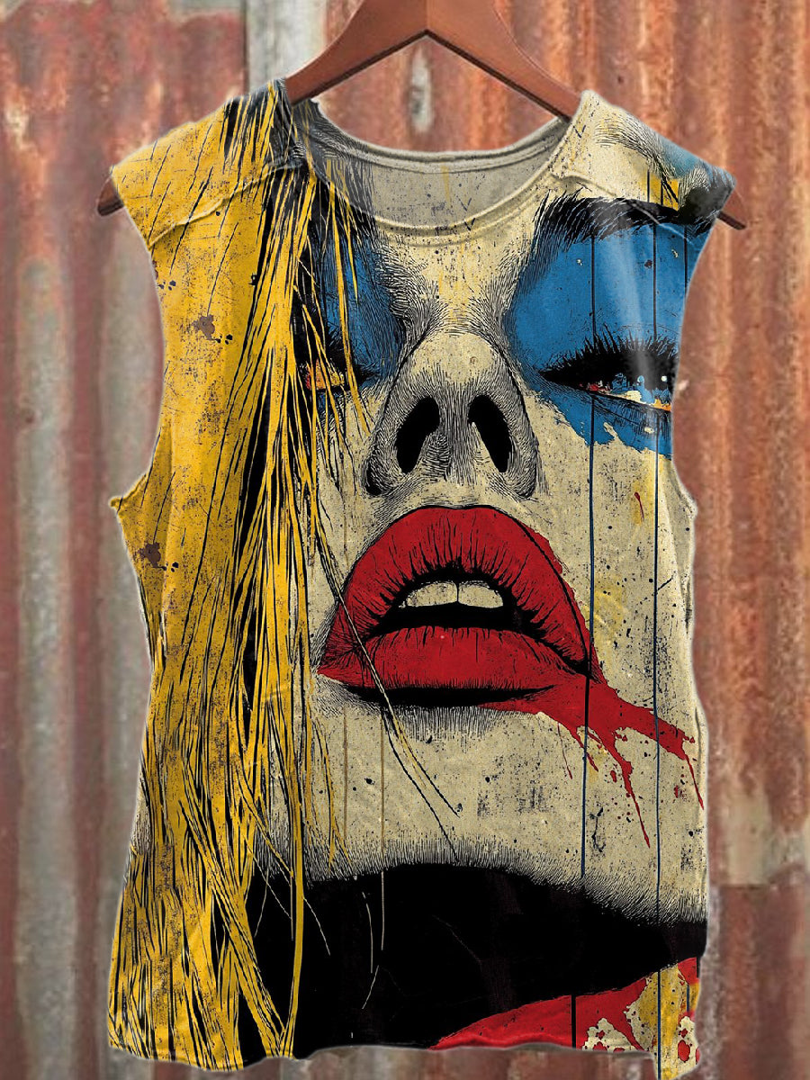 Retro Pop Graffiti Imprimir Casual Algodão Tank Top