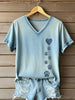 T-shirt de pata de cão e coração feminino
